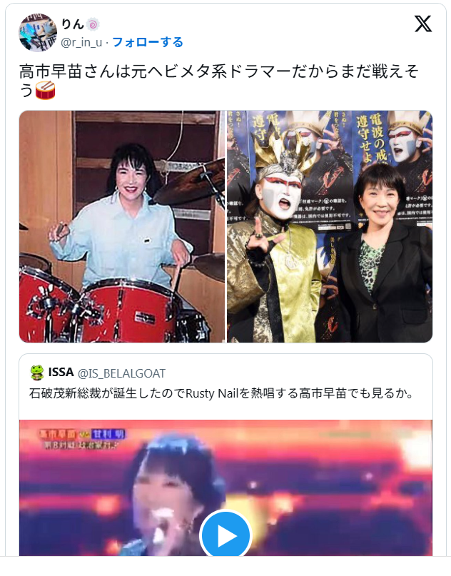 若い頃の「可愛い」「ワイルド」「ロックな」高市早苗さんの話も彼女の魅力を引き立てるストーリーとして語られています。政治家として、現在は“日本のサッチャー”初の女性総裁誕生へ向けて、